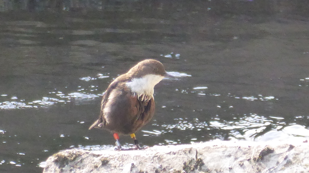 This is the second dipper that I saw back in 2021 and I’ve only seen them once. They are female and were ringed on 2019-Feb-27 at Grange in Monifieth with their “age” recorded as 6 indicating “unknown age but born before the current calendar year”. The rings are yellow-over-black on their left leg and orange-over-metal on their right leg (the orange appears red in the image above). All my images of this bird are in this Flickr album.