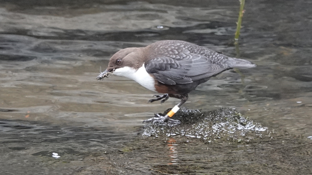 This is the eighth dipper that I saw back in 2021. I haven’t seen their capture/recovery history record so I don’t know their ring number, or when they were first captured. I presume that they are male because they appear to be the mate Dipper #3 which is female. The rings are white-over-orange on their left leg and blue-over-metal on their right leg. All my images of this bird are in this Flickr album.